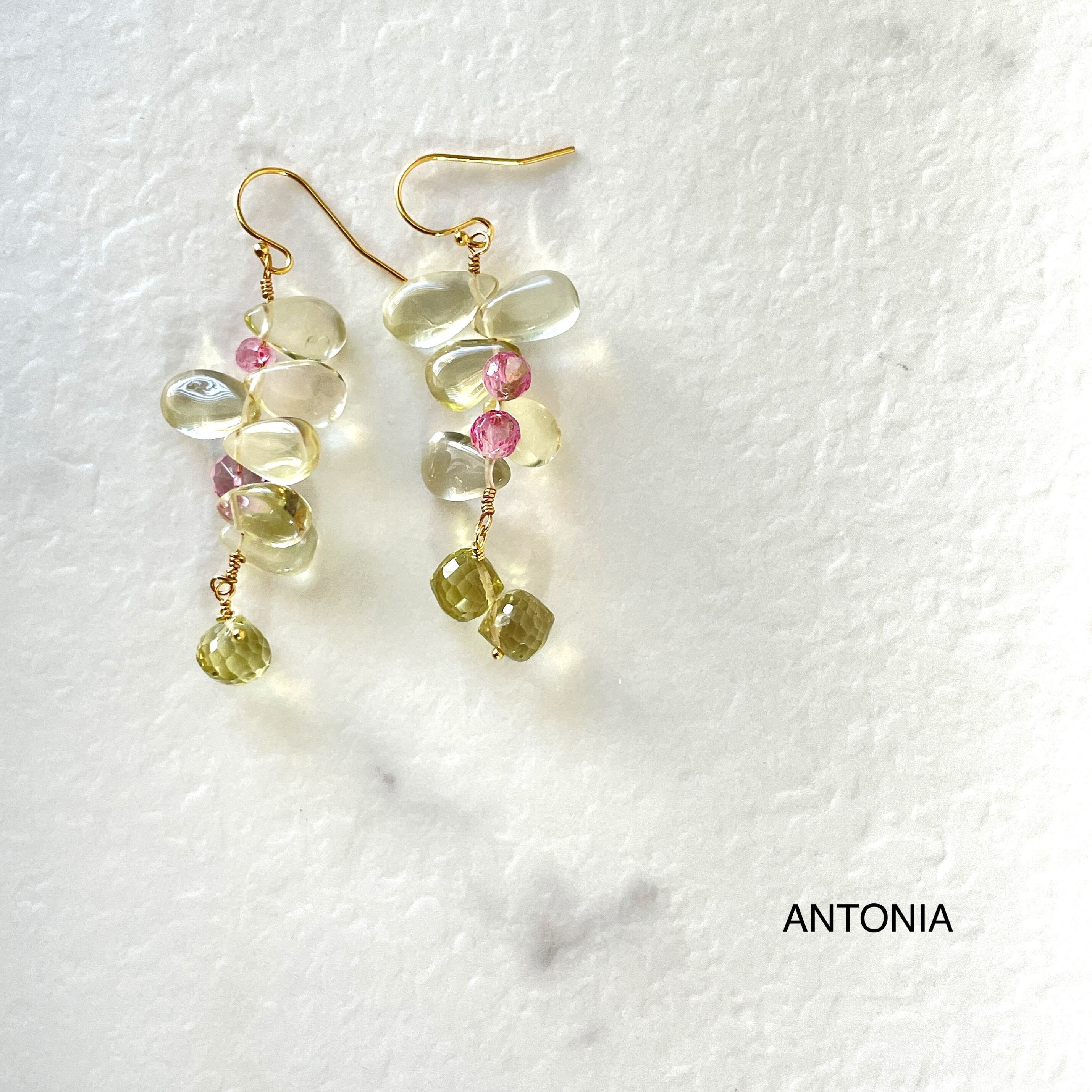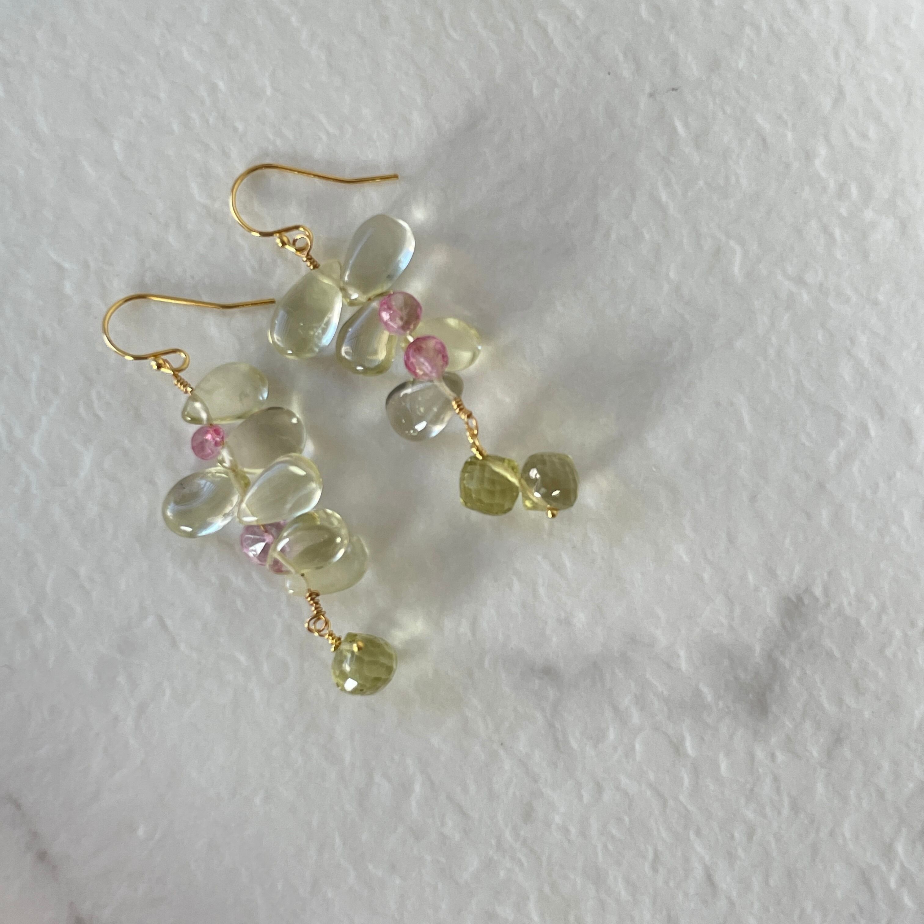 煌めくレモンクォーツが目を引くデザインピアスです。1点物なので、世界でひとつだけの特別感があります。