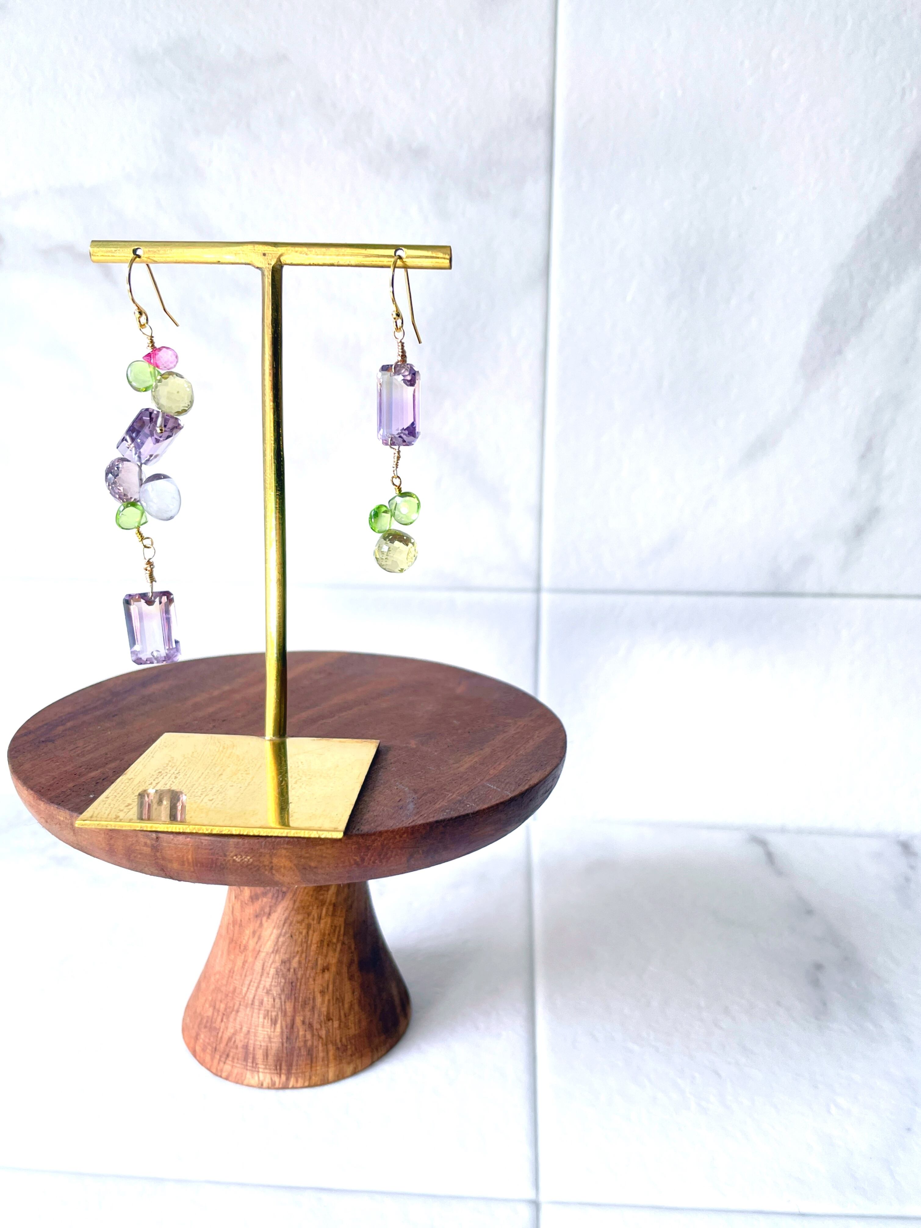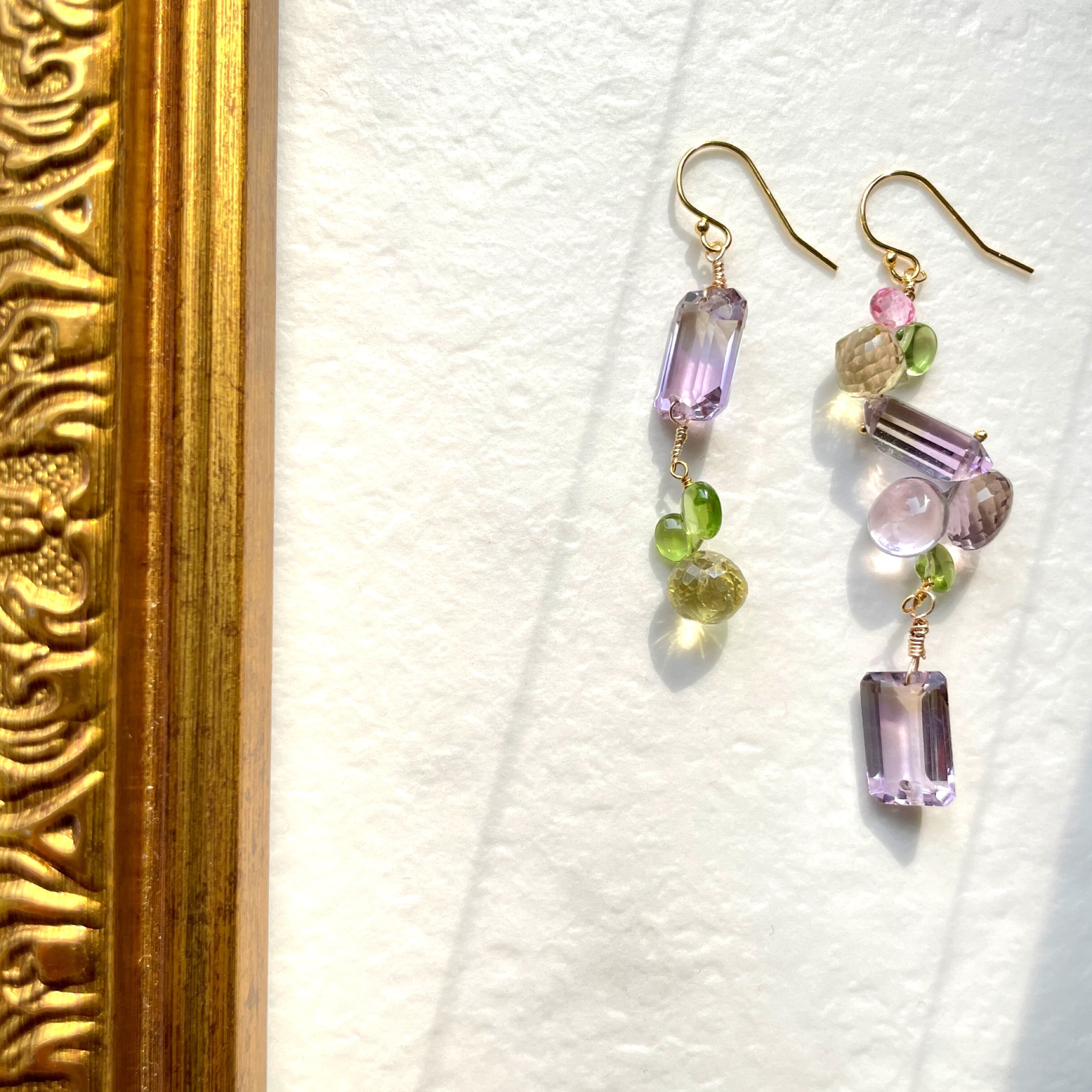 アメジスト、レモンクォーツ、ペリドット 染ピンクトパーズといったカラフルな石を贅沢に使用し、あなたの耳元を彩ります。
