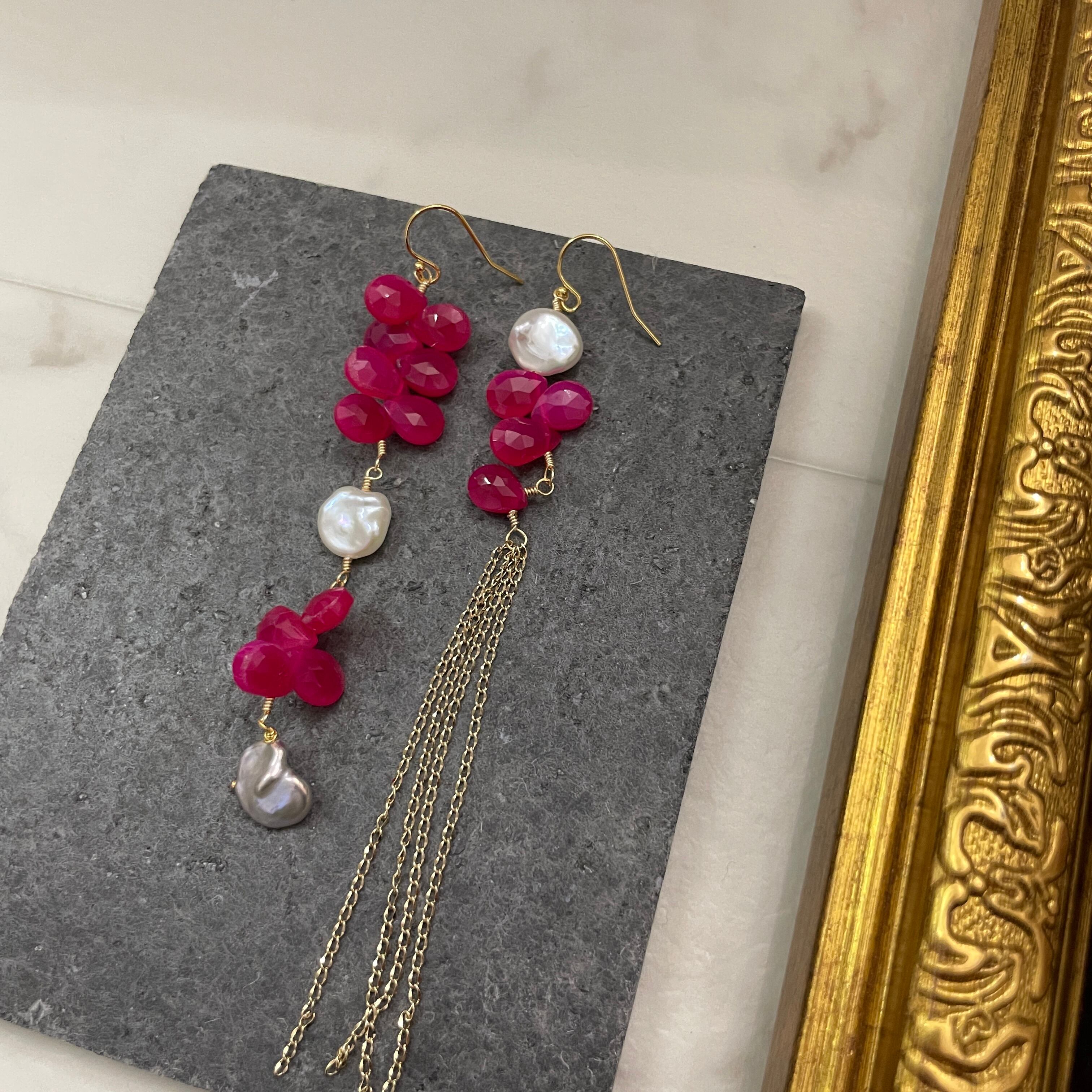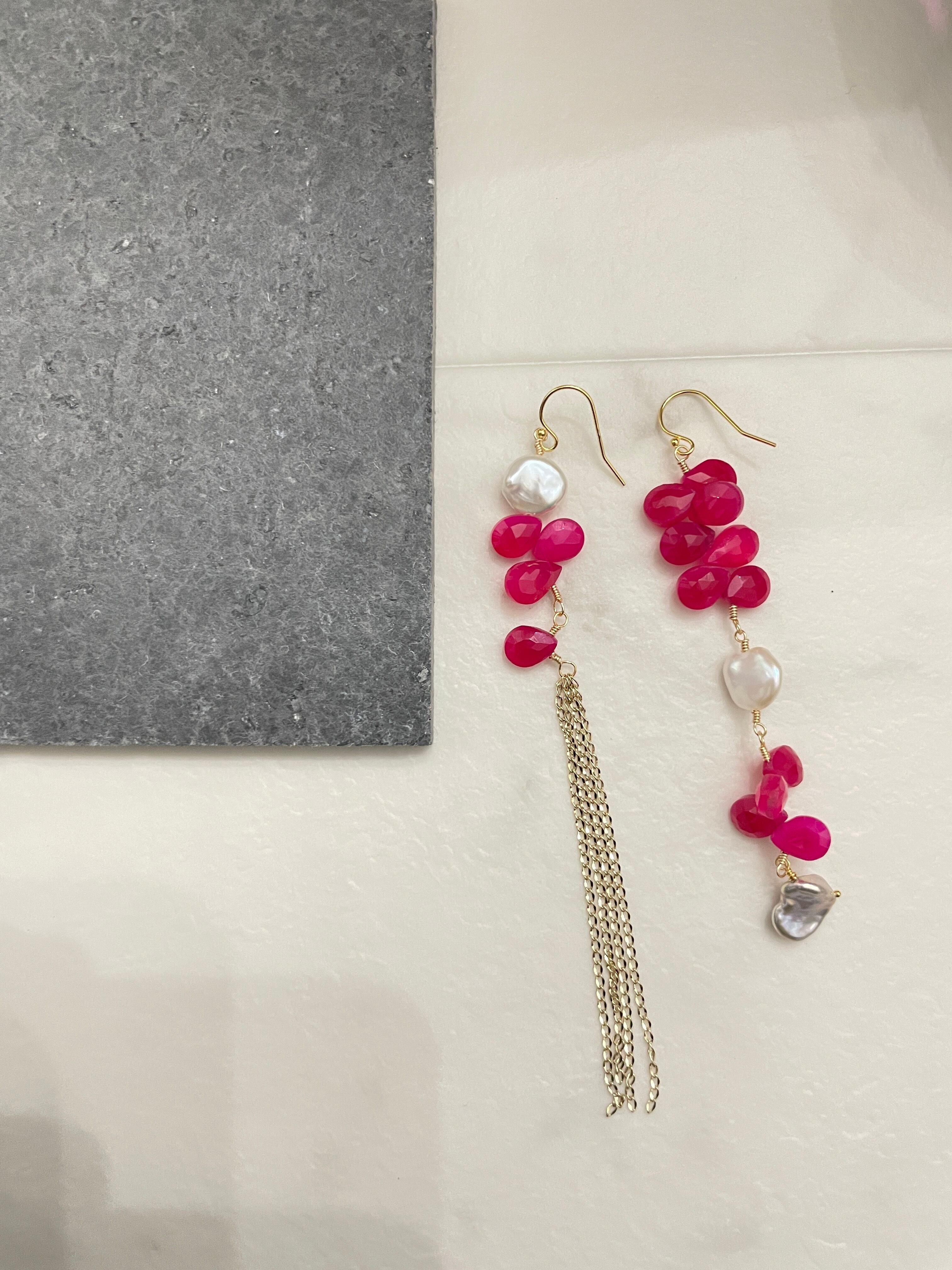 デザインピアス 1点物"ant2404140171"は、オリジナルデザインの染ピンクカラーメノウを使用したアクセサリーです。
